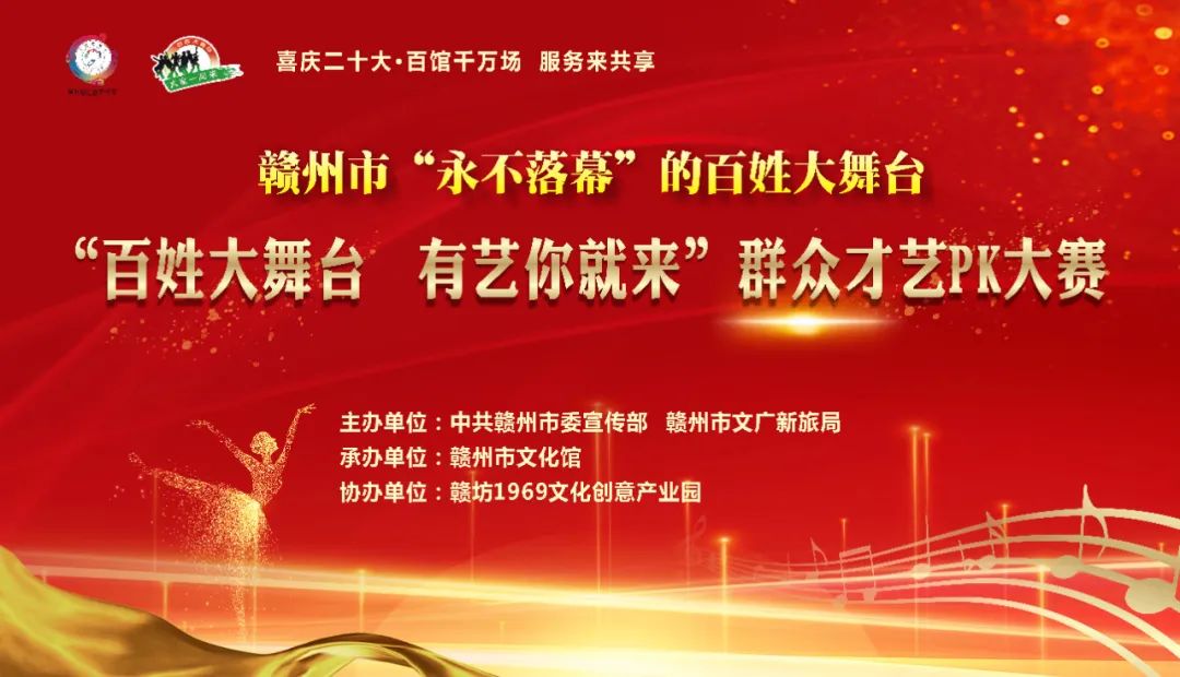 为学习宣传贯彻党的二十大精神,展现赣州人民积极向上的精神风貌,进一步增强广大群众的文化幸福感、获得感,11月21日晚,由中共赣州市委宣传部、赣州市文广新旅局主办,赣州市文化馆承办,赣坊1969文化创意产业园协办的赣州市“永不落幕”的百姓大舞台暨“百姓大舞台 有艺你就来”群众才艺PK大赛在赣坊1969文化创意产业园举办。