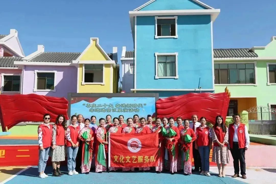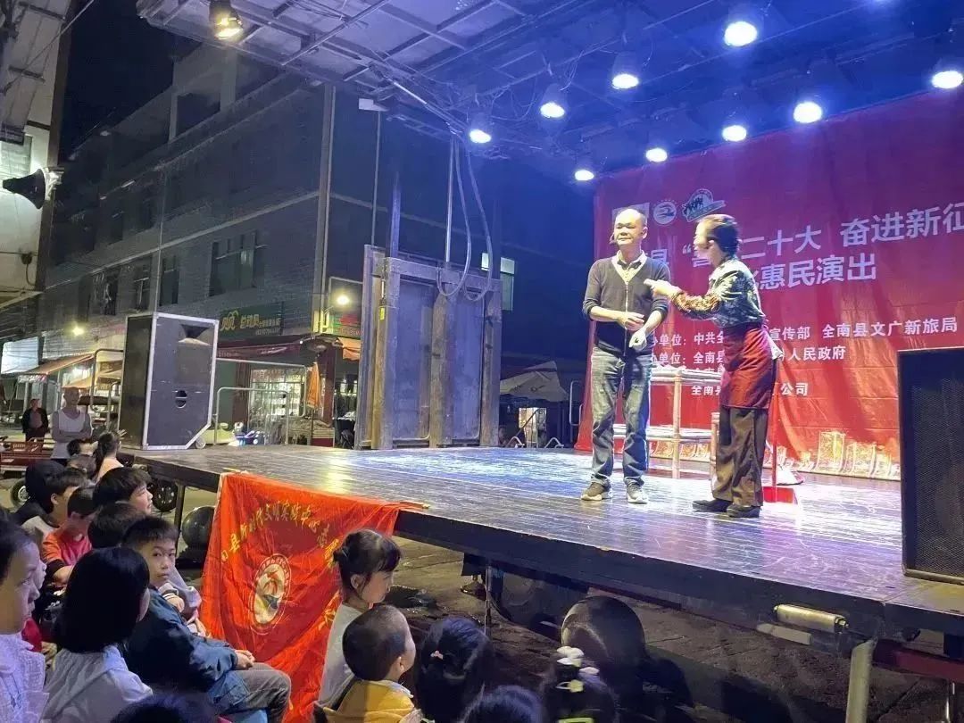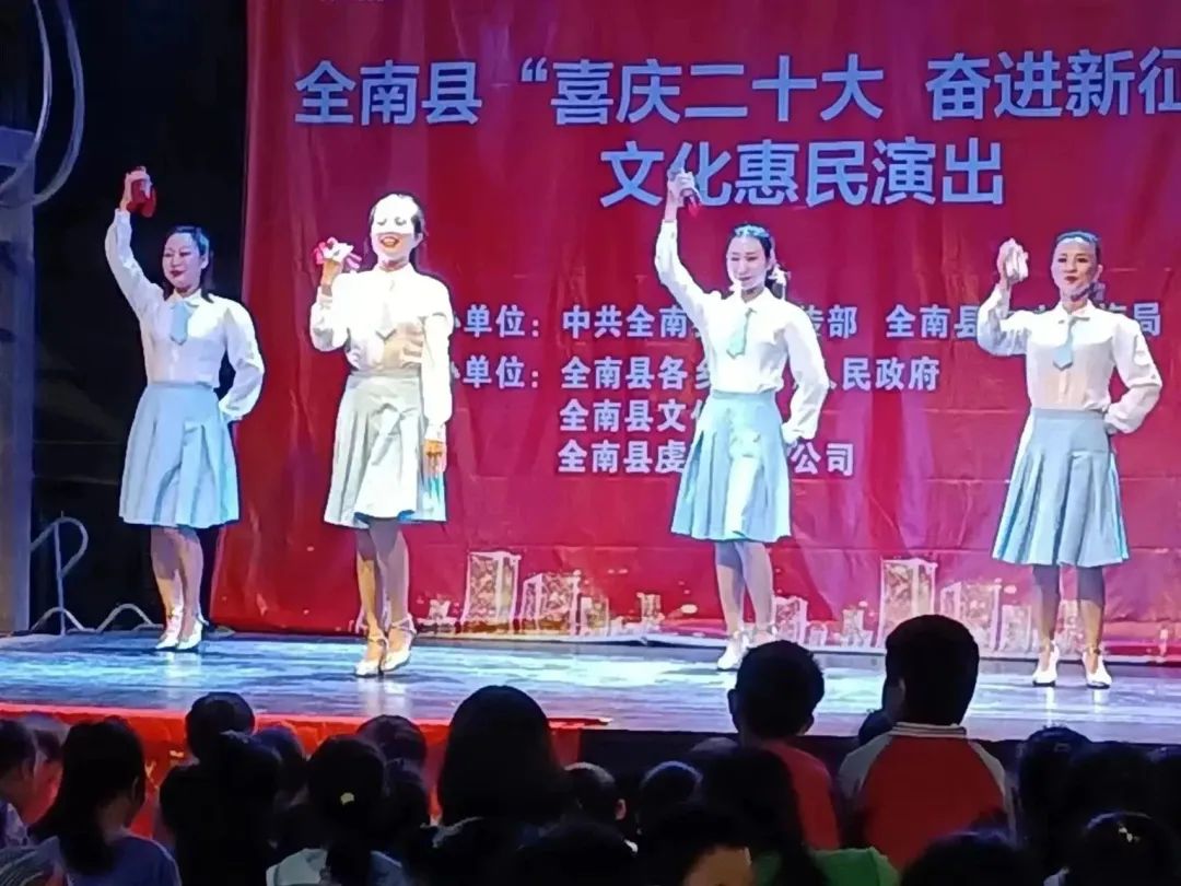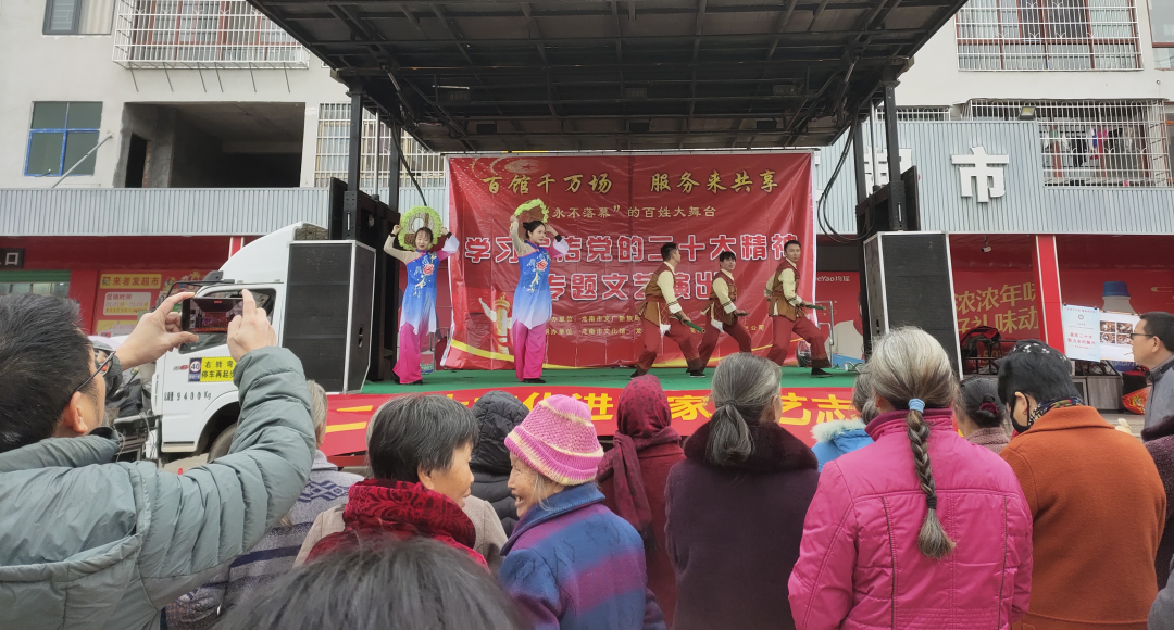 会昌县文化馆文艺志愿者们通过舞蹈、采茶、山歌、快板、乐器演奏、小品等形式,表演了《庆祝党的二十大,奋力开启新征程》《独好会昌喜事多》等10个节目,给近3千名群众带来了精彩的视听盛宴。