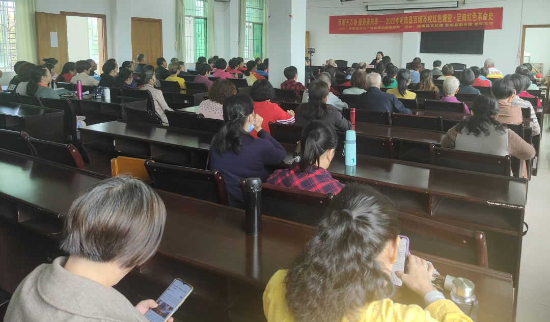 为迎接党的二十大召开,讴歌党的光辉伟业,展现赣南苏区振兴十周年发展成果,用情用力讲好江西故事,传播当代中国价值观念,加深群众对理想信念的认识和理解,坚定文化自信。2022年11月29下午在定南县老年体协开展红色课堂——定南红色革命史《苏区盐道》。