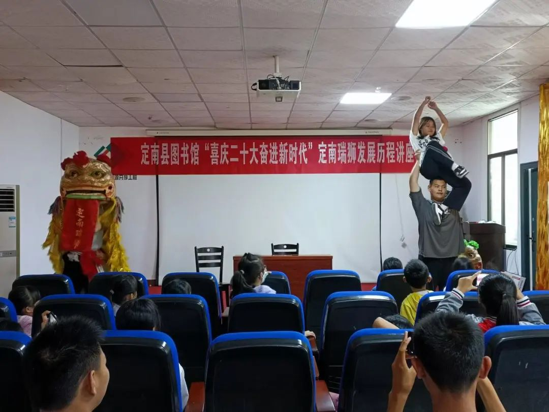 在讲座中,黄教练用通俗易懂、风趣幽默的语言,结合二十大“推进文化自信,铸就社会主义文化新辉煌”精神,为大家讲解定南瑞狮的传承,以及瑞狮发展和新时代同步的历程。