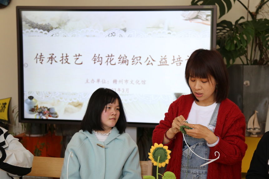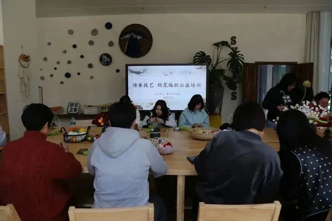钩针编织是以螺纹棉花线钩成的蕾丝钩针编织。一把钩针,一枚绣花针,一团细线,或钩,或绣,曾经是老一辈信手拈来的技艺,如今却鲜有人知。为传承钩针编织技艺,丰富广大市民的精神文化生活,提升幸福感,赣州市文化馆于3月6日下午开展“传承技艺”钩花编织公益培训活动。