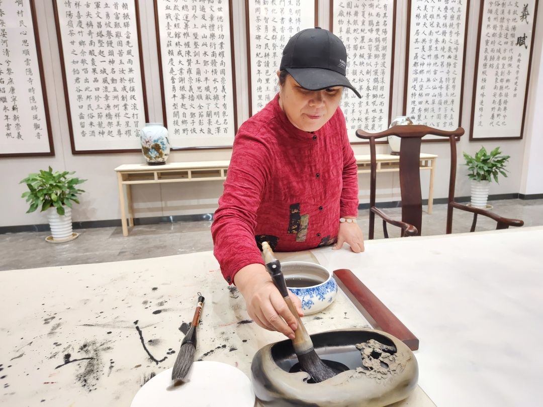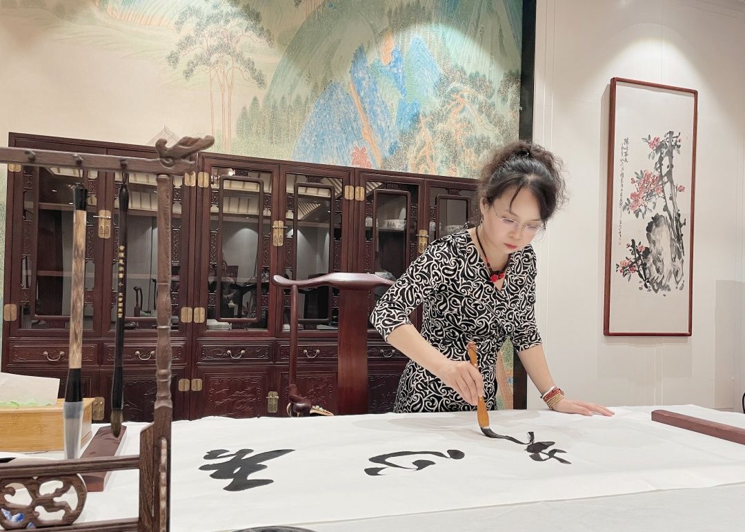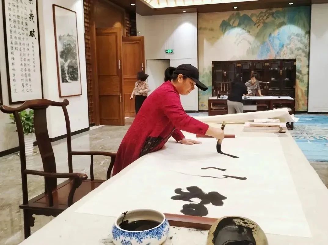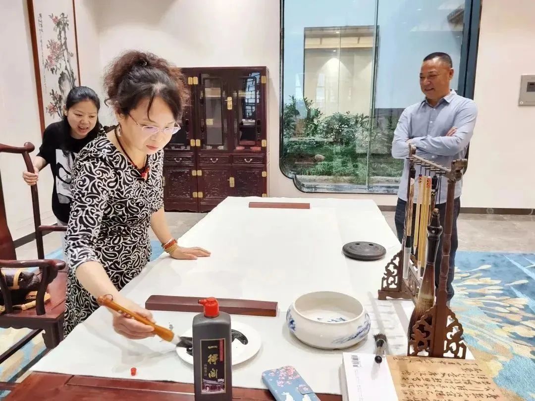 活动现场,赣州市文化馆知名书画家赖俐华、冯霄以笔会友、以墨交心,即兴挥毫创作,让大家近距离感受书画艺术的魅力,为双方文化交流增添活力生机。