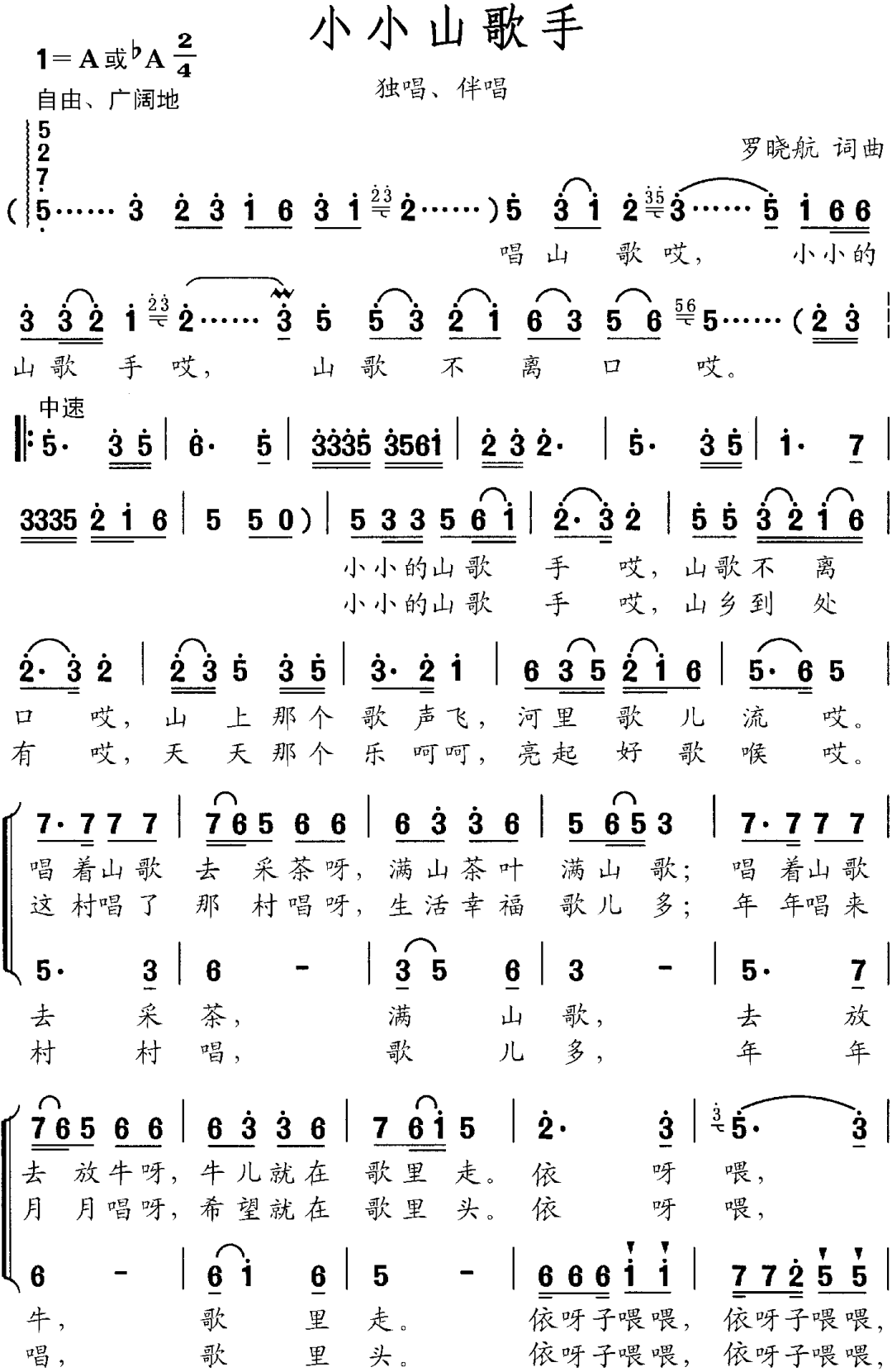 少年儿童歌曲《小小山歌手》以它优美动听的旋律、鲜明的地方色彩、欢快的节奏,抒发了少年儿童对大自然的热爱,对童年幸福生活的赞美,描绘了社会主义新农村的绚丽图画。
