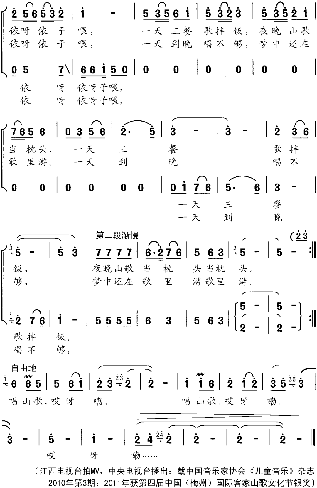 赣南被誉为山歌之乡,勤劳的人们世世代代在这里生活,出于独特的地理环境和客籍背景,唱山歌成了人们生活中不可缺少的一部分,“一天三餐歌拌饭,夜晚山歌当枕头。”