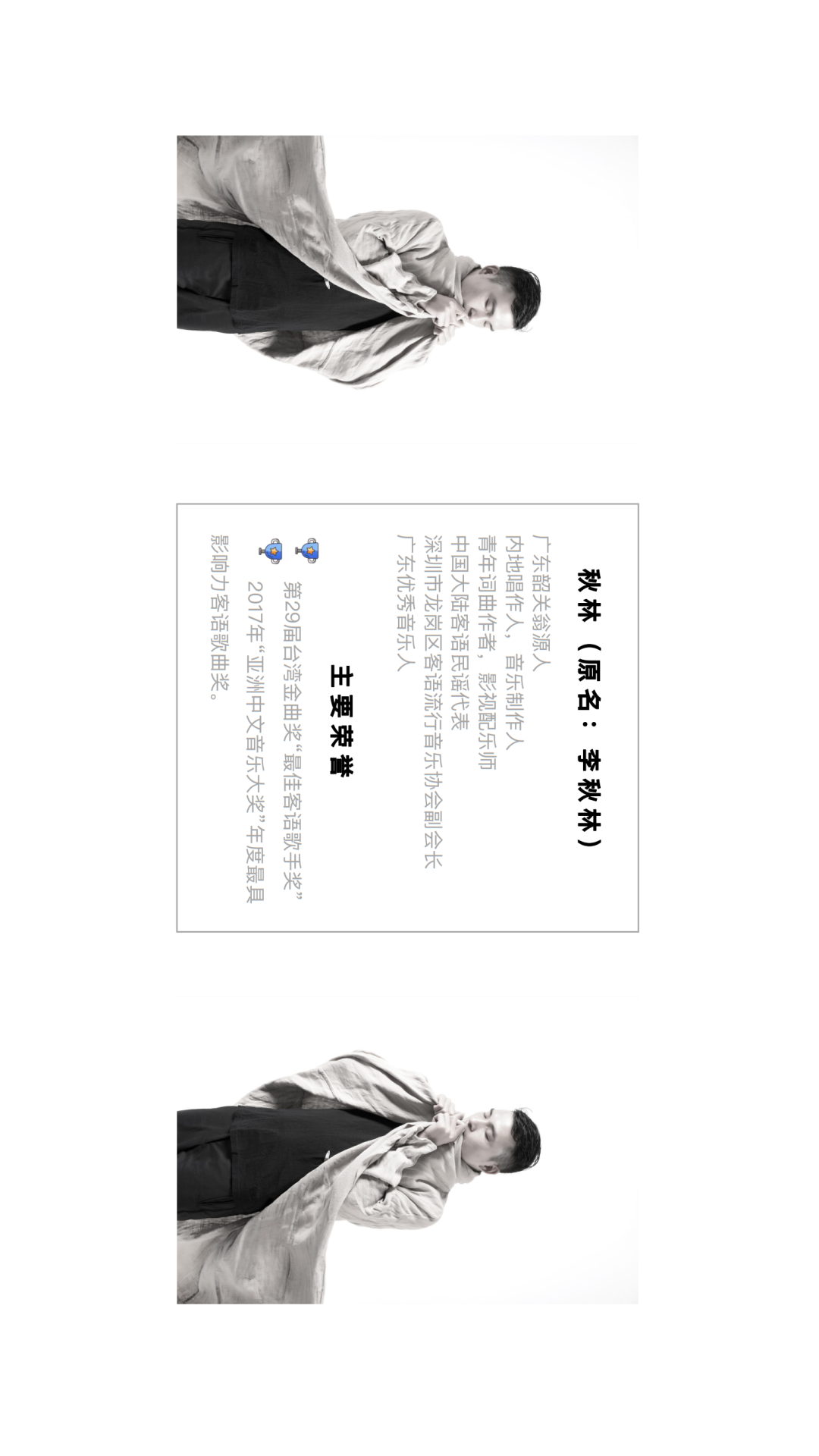 秋林,本名:李秋林,广东韶关翁源县客家人,内地唱作人、音乐制作人。从事平面设计师、吉他教师等职业。深圳市龙岗区客语流行音乐协会副会长 ,广东省流行音乐协会会员,广东省流行音乐协会吉他委员 会会员。