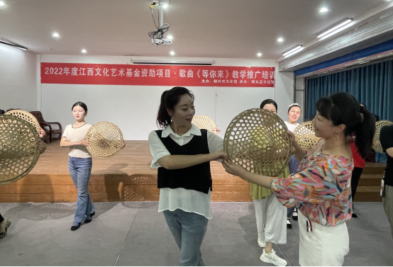 6月19至21日,由赣州市文化馆主办,崇义县文化馆承办的2022年度江西文化艺术基金资助项目——歌曲《等你来》教学推广培训活动在崇义县开展,市文化馆工会主席刘鸿英、艺术普及部主任高静赴崇义县开展舞蹈教学培训。