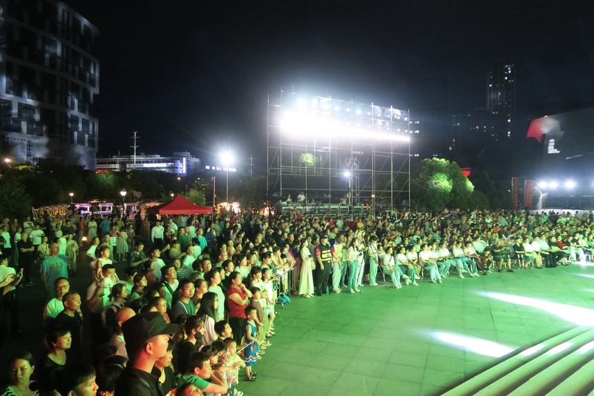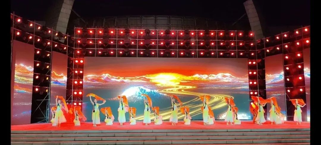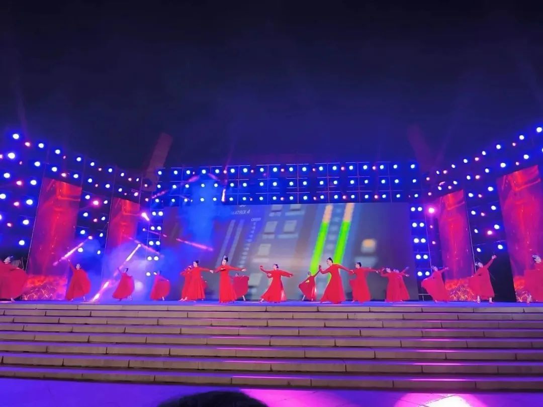 决赛活动现场,彩旗飘飘,灯光璀璨,人头攒动,热闹非凡。演员们跳着各具特色的舞蹈,伴随着欢快的音乐节拍,赢得了在场观众的阵阵掌声。
