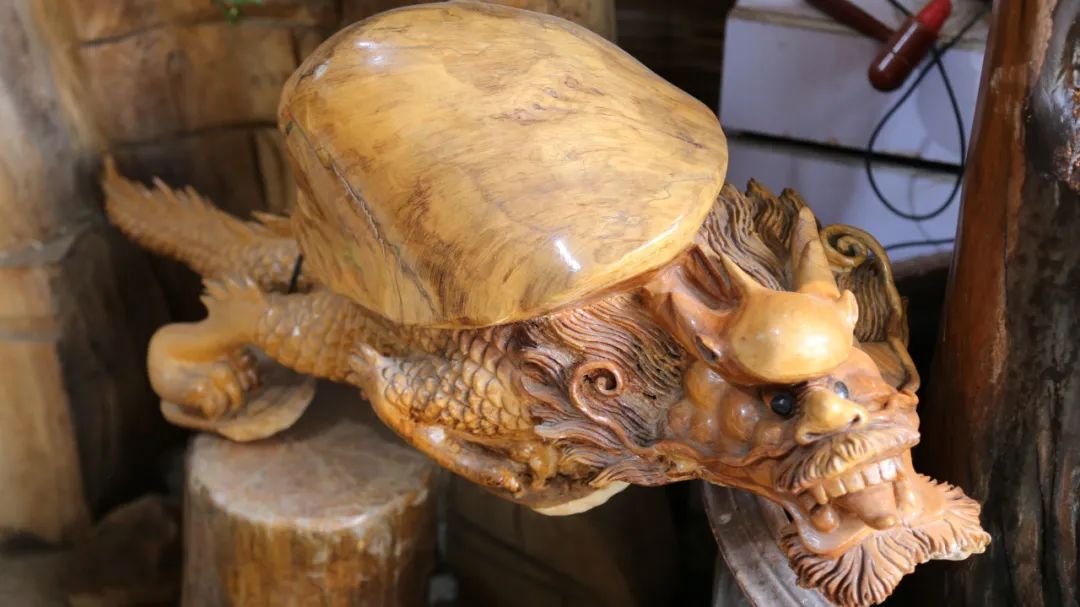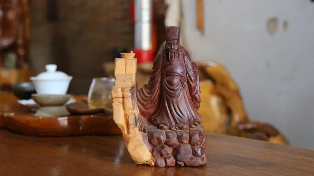 推门走进徐良慧工作室,映入眼帘的是一件件精美的根雕作品,它们有的蕴意深远,有的灵动传神,是大自然与人类智慧的结晶。根雕古琴,纯粹而古朴;根雕王阳明像,栩栩如生而神韵十足……