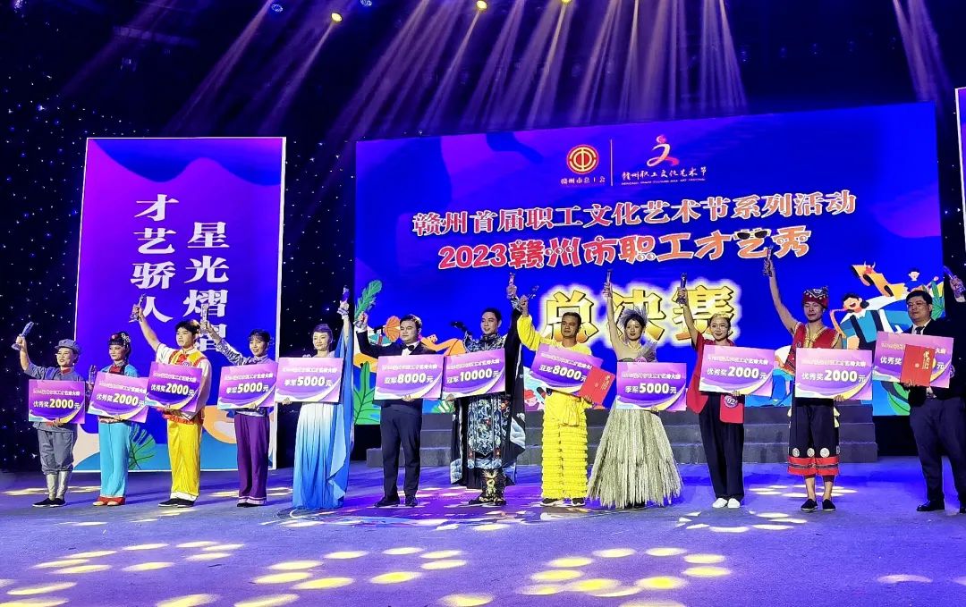 用艺术歌颂劳动者,用行动点亮新生活。10月27日晚,2023年赣州市职工才艺秀大赛总决赛暨颁奖晚会在市融媒体中心演播大厅举行,12个才艺节目职工选手大秀才艺,展示了我市职工昂扬向上的精神风貌和积极自信的时代风采。市人大常委会副主任,市总工会党组书记、主席吴青,市委副秘书长杨兴国,市政府副秘书长亓伟扬,市总工会党组副书记、常务副主席刘文杰和市总工会其他班子成员,以及市融媒体中心、市文广新旅局、中国工商银行赣州分行有关领导出席活动并为获奖节目职工选手颁奖。
