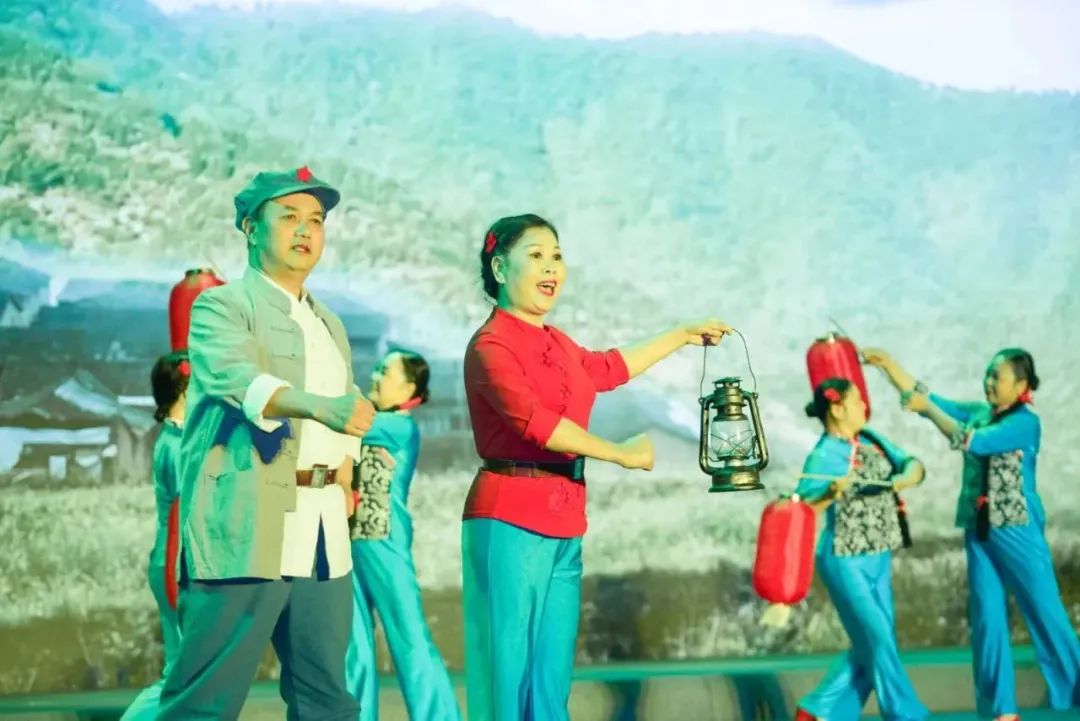 舞蹈《红色情怀》、袍秀《映山红》、舞蹈《祖国的母亲河》、配乐诗朗诵《诗意中国》,抒写了老区群众对党和祖国的坚定信念和真挚情感,展现了红色基因的薪火相传。