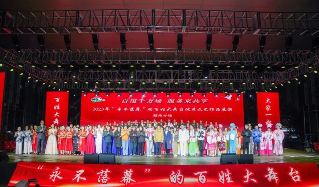 为全面展示赣州文化建设和文明创建成果,展现赣南人民感恩奋进的精神风貌,不断满足人民群众日益增长的文化生活需求,12月12日晚,由江西省文旅厅主办、江西省文化馆和赣州市文广新旅局承办、赣州市公共文化服务中心和赣州市文化馆执行承办的“百馆千万场 服务来共享”--2023年“永不落幕”的百姓大舞台优秀文艺作品展演在赣州市文化馆群星广场精彩上演,共有约2000名市民群众参与演出或在现场观看演出。