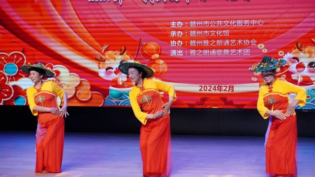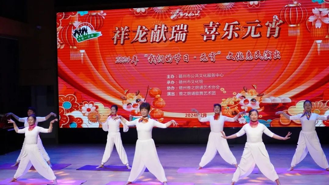 火树银花元夕夜,彩灯万盏熠霞流。为进一步丰富群众的精神文化生活,营造欢乐祥和的节日氛围,提升群众的幸福感与获得感,2月23日,由赣州市公共文化服务中心主办、赣州市文化馆承办、赣州雅之朗诵艺术协会协办,雅之朗诵歌舞艺术团演出的“祥龙献瑞 喜乐元宵”——我们的节日·元宵文化惠民演出在赣州市文化馆群星剧场成功举办,共有约300名群众参与本次活动。