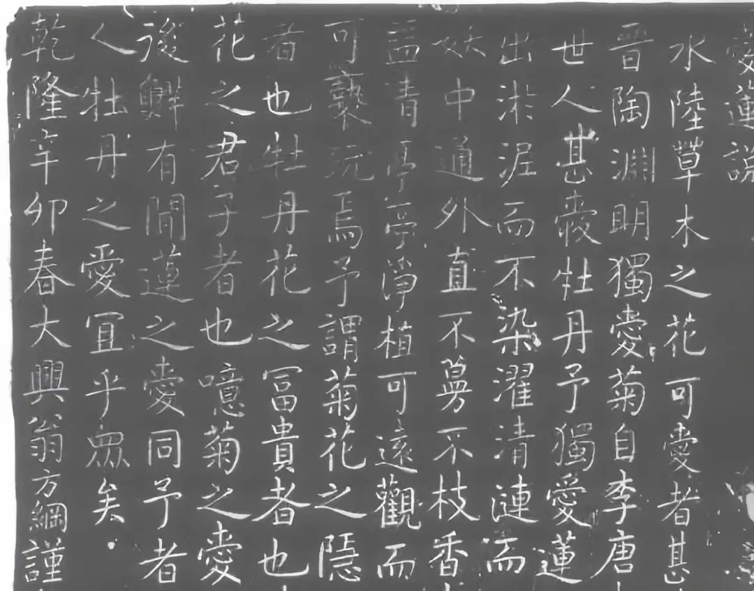 据清邓显鹤《周子全书》《年谱》记载:“八年癸卯。先生四十七,正月七日,行县至于都,邀余杭钱建侯(拓)、四明沈希颜游岩题石,并有诗刻石。五月,作《爱莲说》,沈希颜书,五抟篆额。钱拓上石,即十五日事也。”先生四十七,即嘉祐八年(1063)。