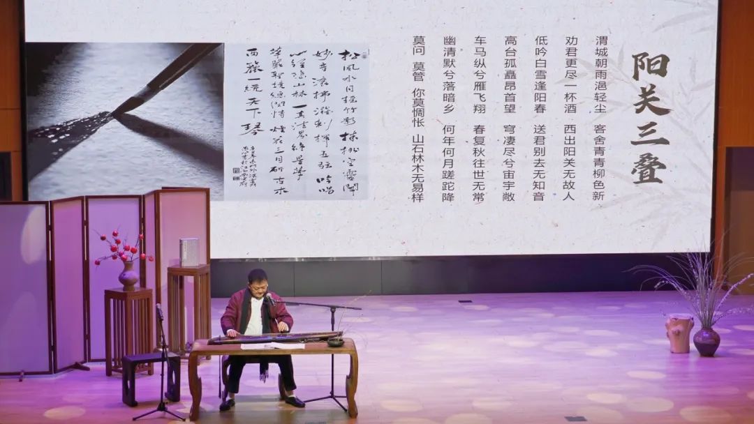 吴老师演奏的《国风·子衿》《阳关三叠》《良宵引》等经典古琴曲目,曲调婉转,古韵优雅,浸润心田。