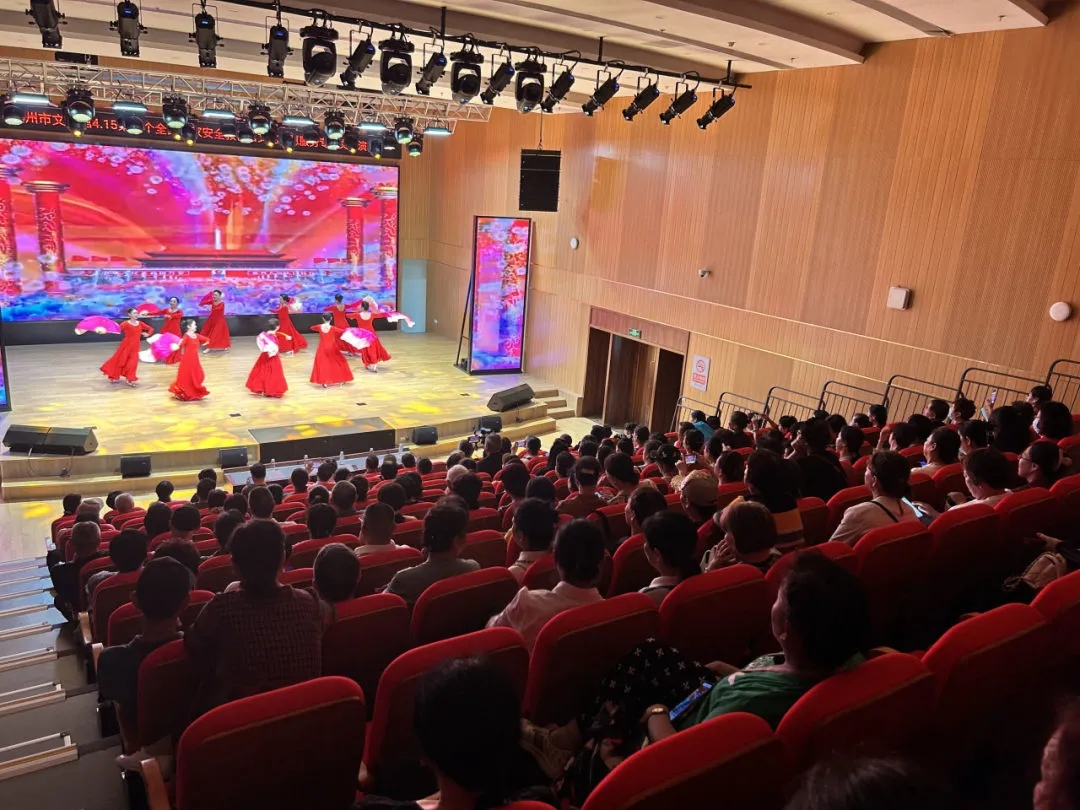 当日,赣州市文化馆群星剧场的舞台灯光璀璨,精彩的节目轮番上演。开场舞蹈《盛世欢歌》以激昂的旋律,舞动出对中华大地深沉的热爱,每一步都凝聚着对祖国母亲的深情诉说。