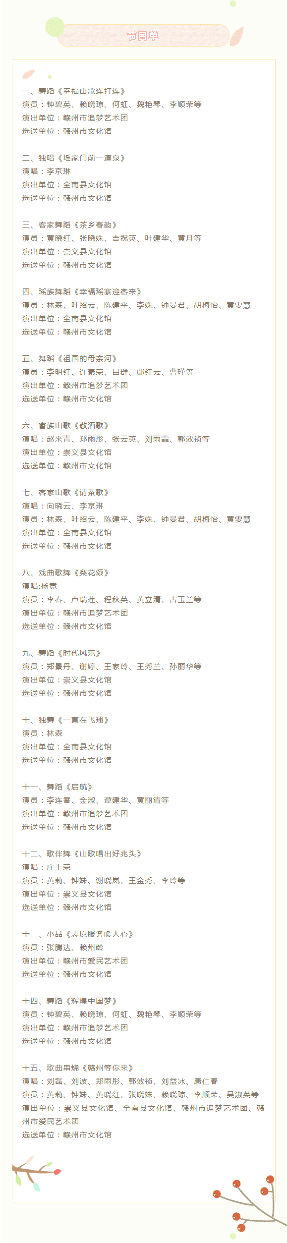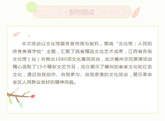 ※ 特别声明:本公众号仅用于赣州市文化馆公共文化服务及群众文化艺术普及,不用于任何商业用途。所转载文章及图片、视频、音频等版权均属原作者。如有侵权,请及时与本公众号联系。