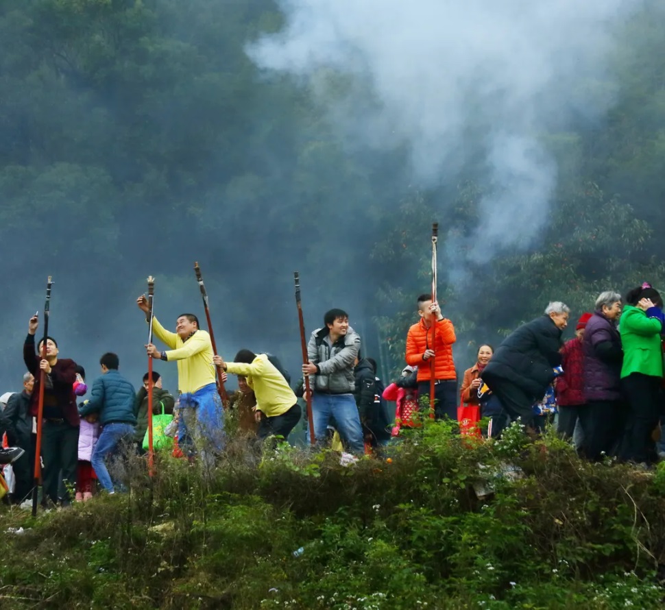 祭祀活动,客家人拿着土炮在大山中呜响,气势非凡  (2023)