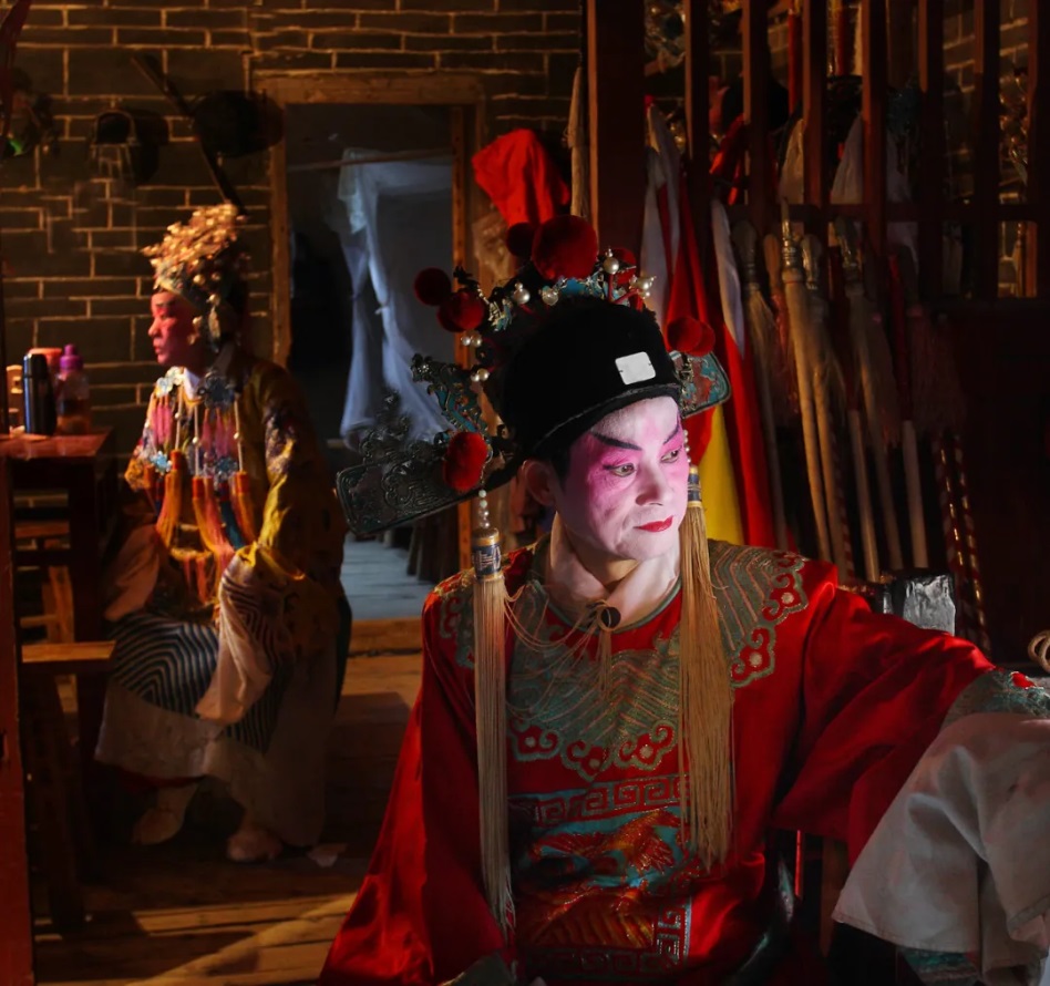 赣南采茶戏,东河戏演员在古老的七里戏台参加演出  (2009)