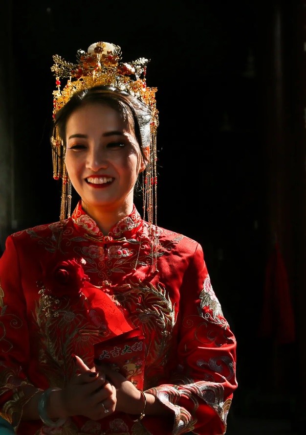 客家女婚嫁都会按照传统,在老人的引导下到宗族老祠堂去祭拜  (2000)