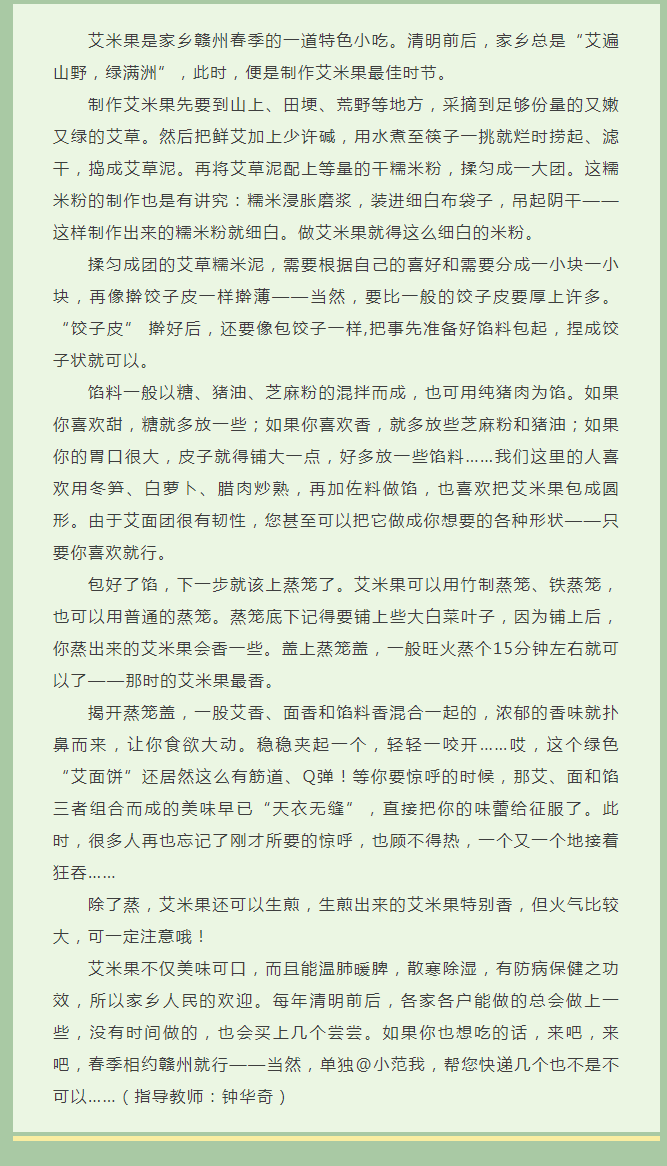 当前位置: 首页 > 文化动态 > 作文里的赣州 | 家乡美食艾米果
