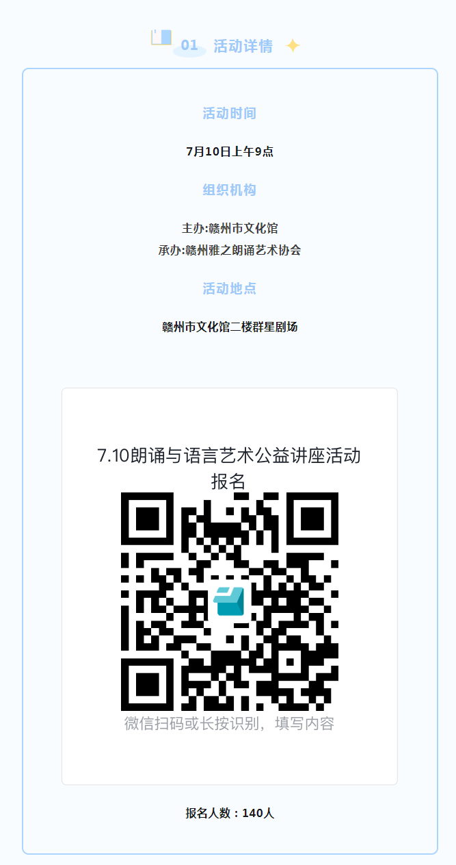 ※ 特别声明:本公众号仅用于赣州市文化馆公共文化服务及群众文化艺术普及,不用于任何商业用途。所转载文章及图片、视频、音频等版权均属原作者。如有侵权,请及时与本公众号联系。
