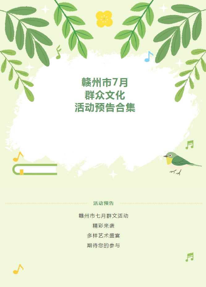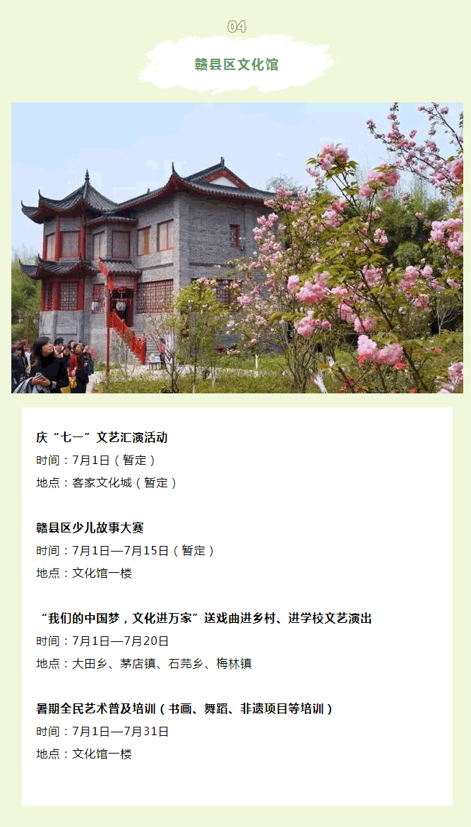 当前位置: 首页 > 文化动态 > 火红七月 初心滚烫 | 赣州市7月群众文化活动预告合集~
