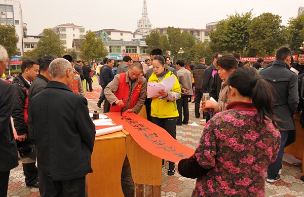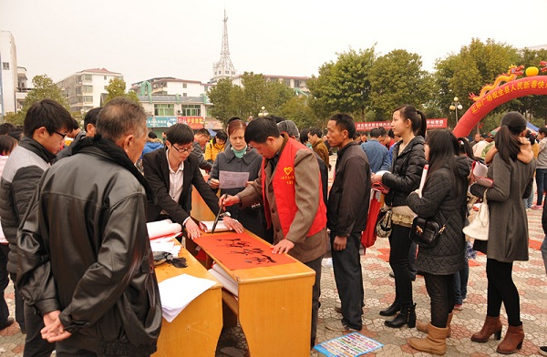 为了更好地传播中华优秀文化,传递正能量,倡导健康向上、文明节俭过春节的新风尚,通过一副副充满喜庆吉祥内容的春联,营造欢乐、祥和的节日气氛,同时给上犹市民营造一个安乐祥和的新春环境,丰富市民的节日文化生活,提升上犹文化品味,2月14日上午在县茗馨广场由上犹县文广局主办,上犹县文化馆承办,县书法协会协办举办上犹县第八届“迎新春·送祝福”义务书写春联活动,此次活动很好地传承了我国新春佳节的习俗,营造了喜庆温馨的节日气氛,受到了广大群众的一致好评。