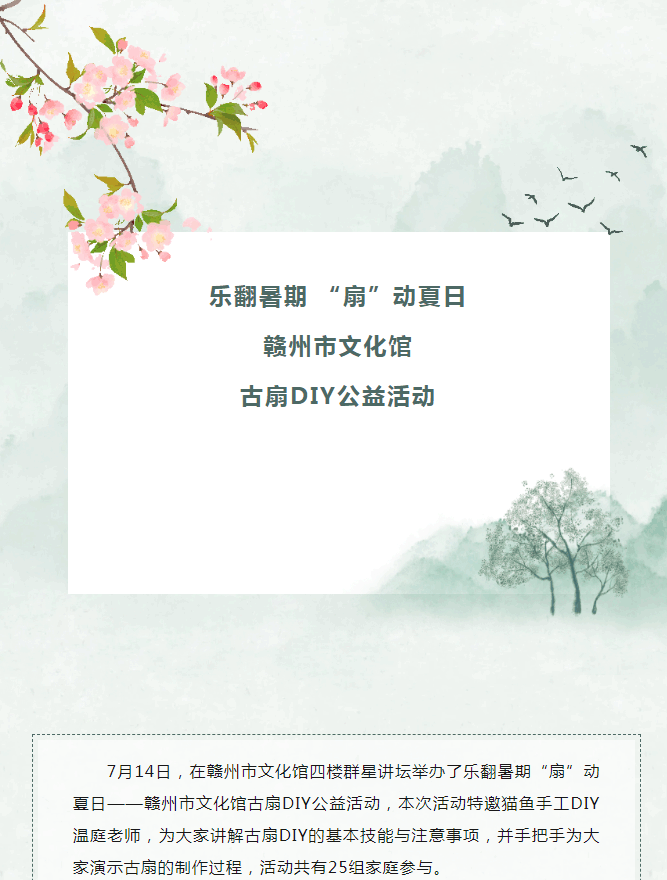 ※ 特别声明:本公众号仅用于赣州市文化馆公共文化服务及群众文化艺术普及,不用于任何商业用途。所转载文章及图片、视频、音频等版权均属原作者。如有侵权,请及时与本公众号联系。