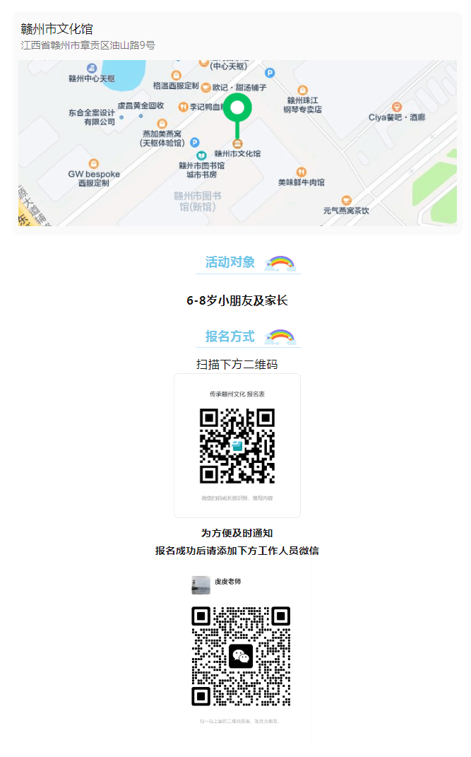 ※ 特别声明:本公众号仅用于赣州市文化馆公共文化服务及群众文化艺术普及,不用于任何商业用途。所转载文章及图片、视频、音频等版权均属原作者。如有侵权,请及时与本公众号联系。