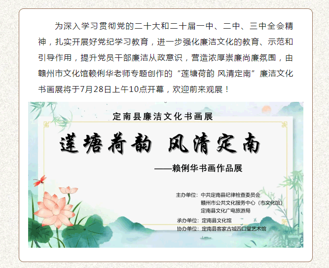 ※ 特别声明:本公众号仅用于赣州市文化馆公共文化服务及群众文化艺术普及,不用于任何商业用途。所转载文章及图片、视频、音频等版权均属原作者。如有侵权,请及时与本公众号联系。