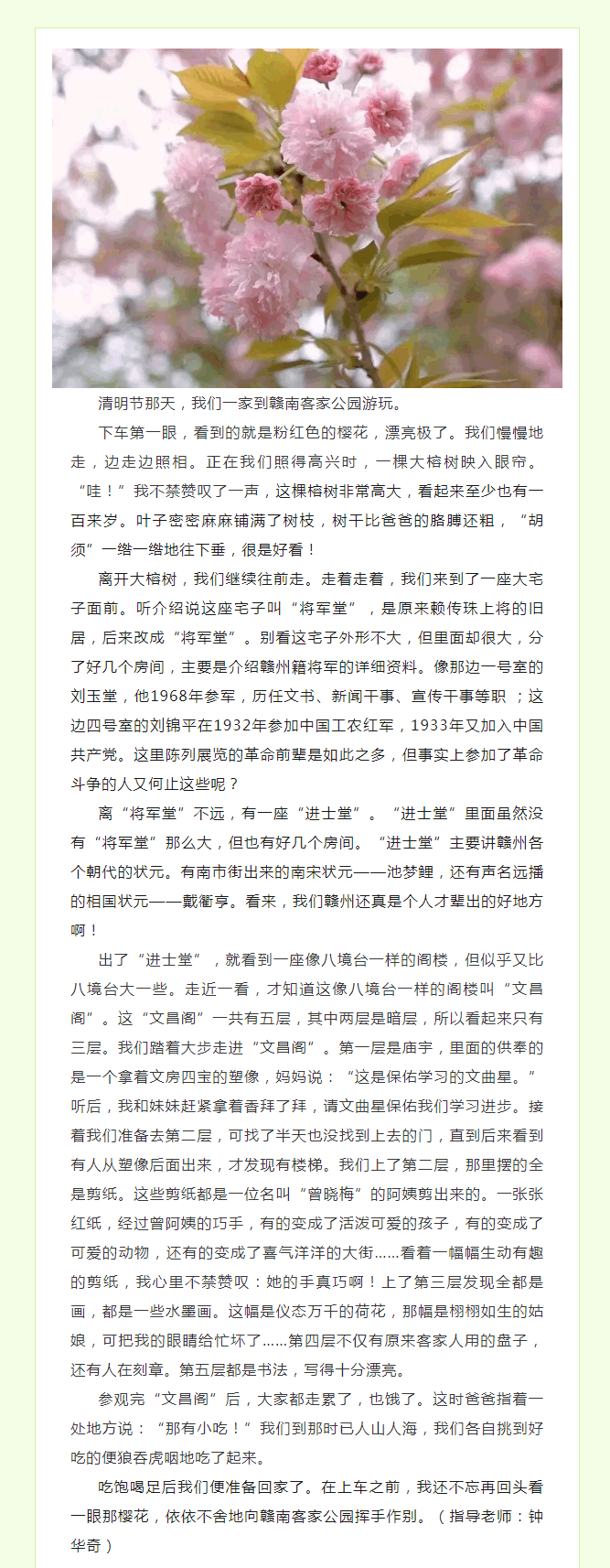 当前位置: 首页 > 文化动态 > 作文里的赣州 | 游赣南客家公园
