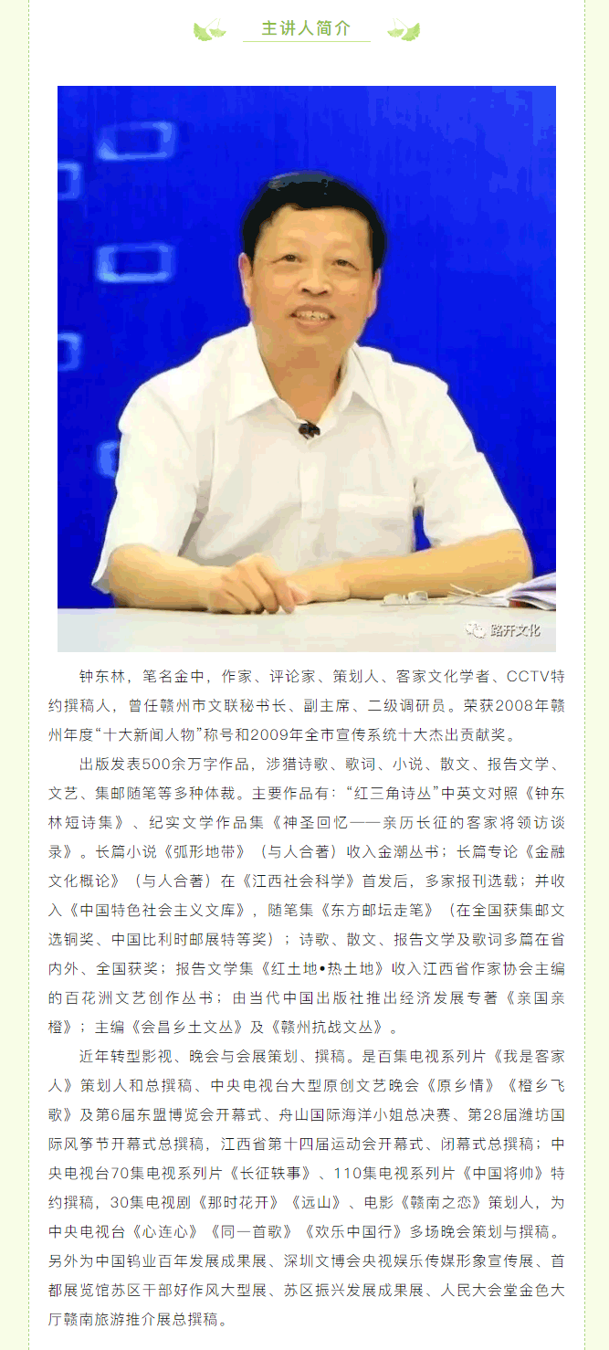 ※ 特别声明:本公众号仅用于赣州市文化馆公共文化服务及群众文化艺术普及,不用于任何商业用途。所转载文章及图片、视频、音频等版权均属原作者。如有侵权,请及时与本公众号联系。