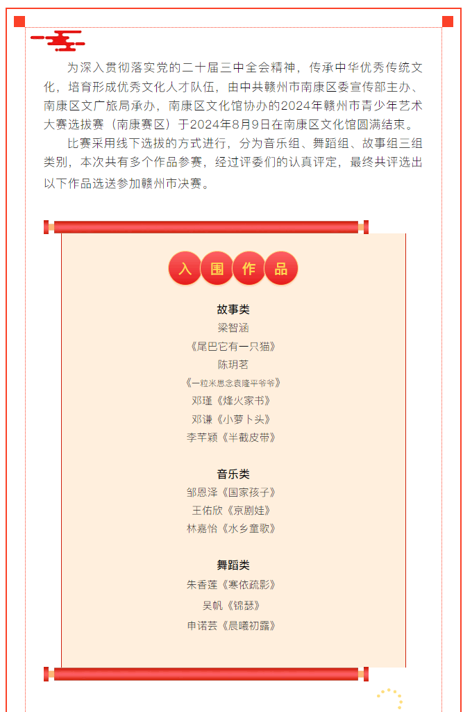 ※ 特别声明:本公众号仅用于赣州市文化馆公共文化服务及群众文化艺术普及,不用于任何商业用途。所转载文章及图片、视频、音频等版权均属原作者。如有侵权,请及时与本公众号联系。