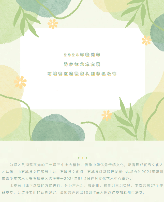 ※ 特别声明:本公众号仅用于赣州市文化馆公共文化服务及群众文化艺术普及,不用于任何商业用途。所转载文章及图片、视频、音频等版权均属原作者。如有侵权,请及时与本公众号联系。