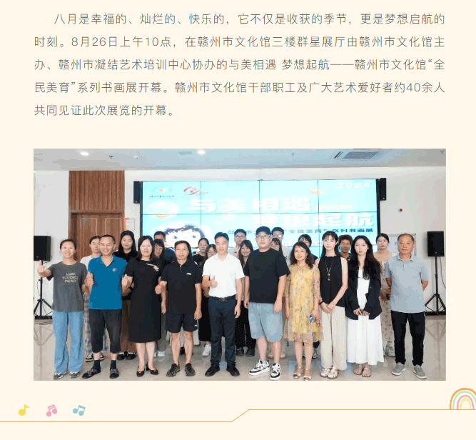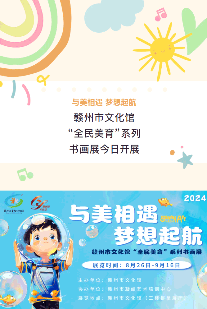 当前位置: 首页 > 文化动态 > 与美相遇 梦想起航 | 赣州市文化馆“全民美育”系列书画展今日开展