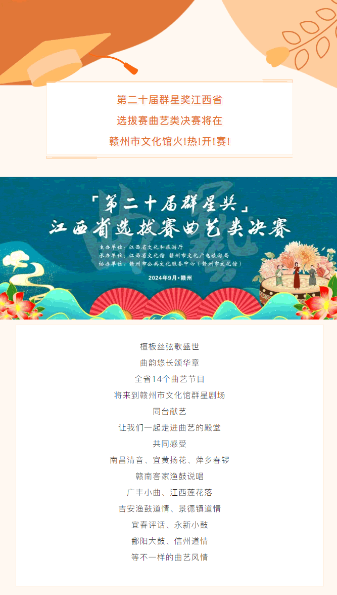 群英荟萃,第二十届群星奖江西省选拔赛曲艺类决赛将在赣州开赛!