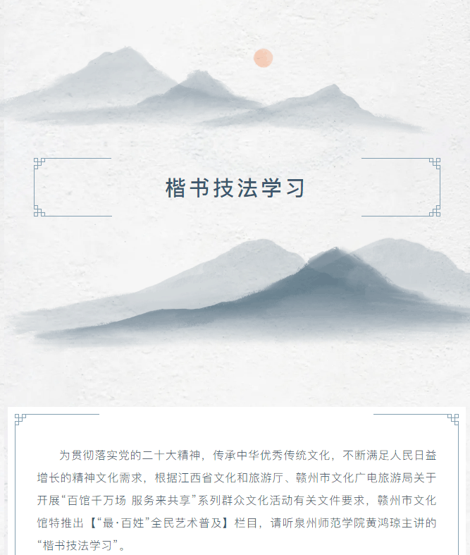 当前位置: 首页 > 文化动态 > 百馆千万场 服务来共享 | 楷书技法学习(六)