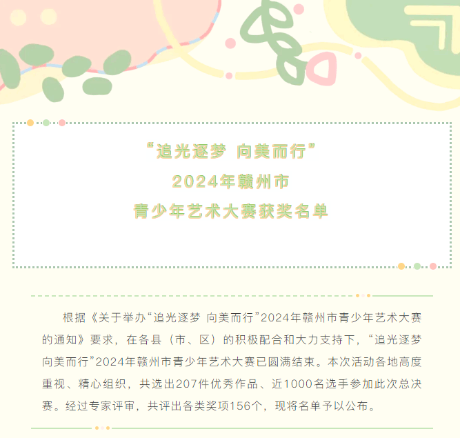 追光逐梦 向美而行 | 2024年赣州市青少年艺术大赛获奖名单公布