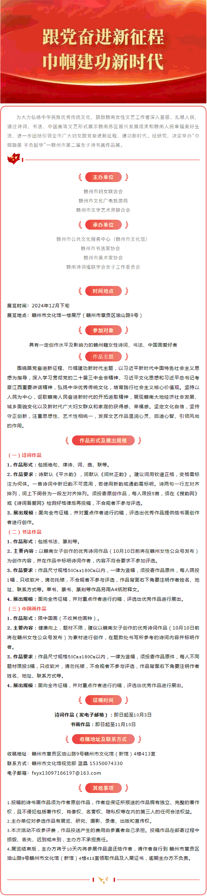 ※ 特别声明:本公众号仅用于赣州市文化馆公共文化服务及群众文化艺术普及,不用于任何商业用途。所转载文章及图片、视频、音频等版权均属原作者。如有侵权,请及时与本公众号联系。