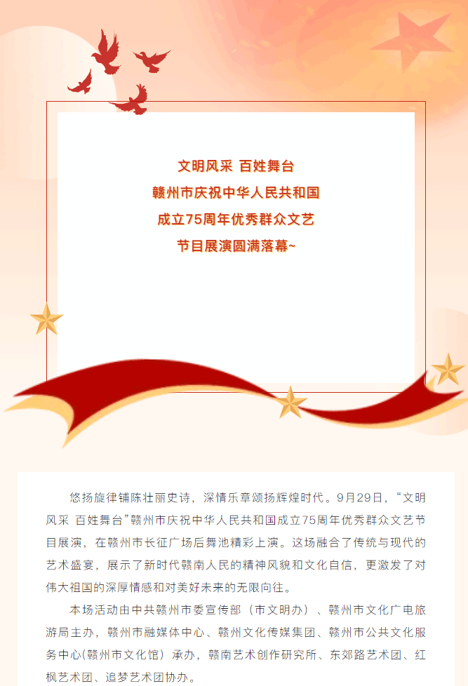※ 特别声明:本公众号仅用于赣州市文化馆公共文化服务及群众文化艺术普及,不用于任何商业用途。所转载文章及图片、视频、音频等版权均属原作者。如有侵权,请及时与本公众号联系。