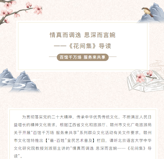 百馆千万场 服务来共享 | 情真而调逸 思深而言婉——《花间集》导读(六)