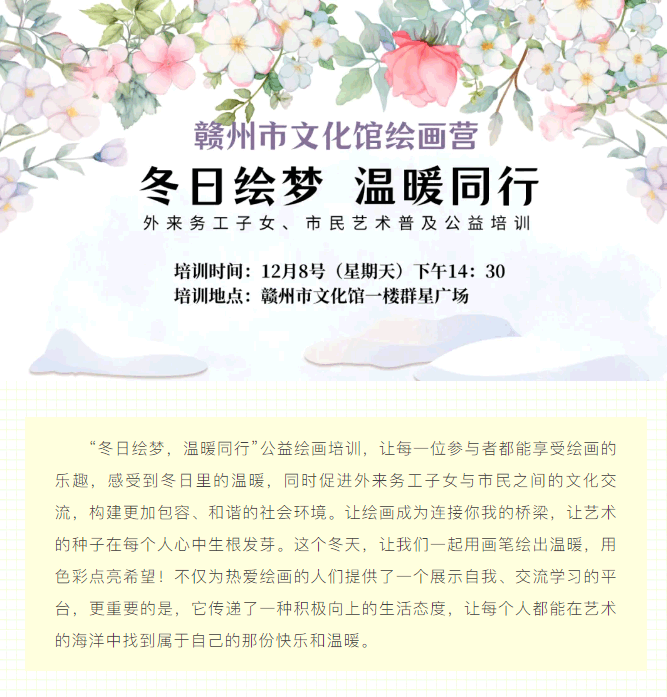※ 特别声明:本公众号仅用于赣州市文化馆公共文化服务及群众文化艺术普及,不用于任何商业用途。所转载文章及图片、视频、音频等版权均属原作者。如有侵权,请及时与本公众号联系。