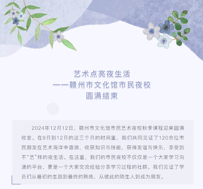 ※ 特别声明:本公众号仅用于赣州市文化馆公共文化服务及群众文化艺术普及,不用于任何商业用途。所转载文章及图片、视频、音频等版权均属原作者。如有侵权,请及时与本公众号联系。