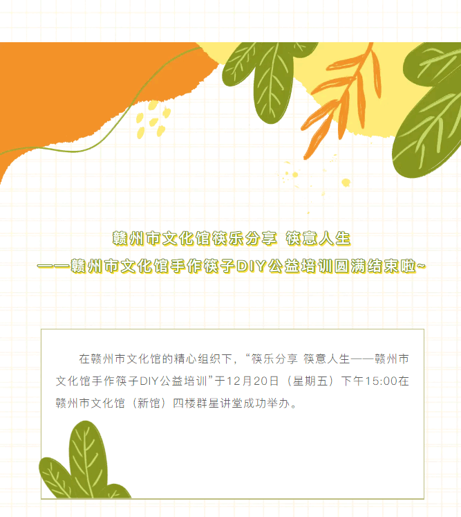 ※ 特别声明:本公众号仅用于赣州市文化馆公共文化服务及群众文化艺术普及,不用于任何商业用途。所转载文章及图片、视频、音频等版权均属原作者。如有侵权,请及时与本公众号联系。
