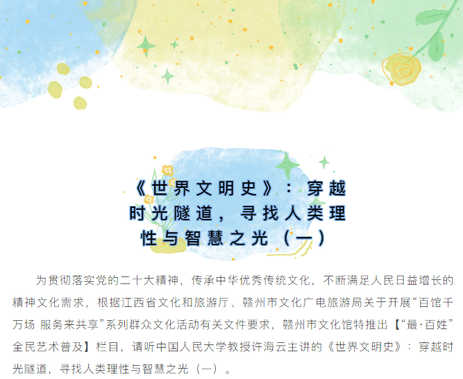 百馆千万场 服务来共享 |《世界文明史》:穿越时光隧道,寻找人类理性与智慧之光(一)