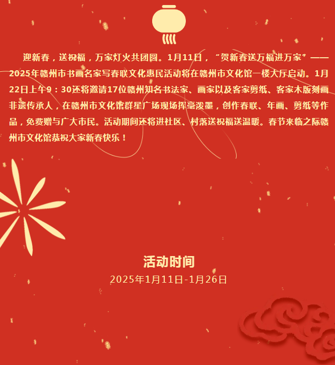 ※ 特别声明:本公众号仅用于赣州市文化馆公共文化服务及群众文化艺术普及,不用于任何商业用途。所转载文章及图片、视频、音频等版权均属原作者。如有侵权,请及时与本公众号联系。
