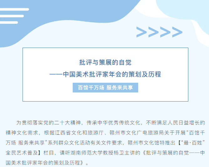 ※ 特别声明:本公众号仅用于赣州市文化馆公共文化服务及群众文化艺术普及,不用于任何商业用途。所转载文章及图片、视频、音频等版权均属原作者。如有侵权,请及时与本公众号联系。