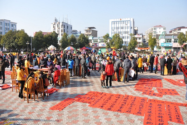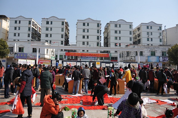 “高居宝地财兴旺 福照家门富生辉”;“内外平安好运来 合家欢乐财源进”“ 共襄中国梦 同写华夏春”过年贴春联是中国最传统的民间习俗,它寄托了人们对未来的美好希望,也深受百姓的喜爱。元月23日,县茗馨广场格外热闹,为迎接即将到来的马年新春,由上犹县文广局主办,上犹县文化馆承办,县书法协会协办的“迎新春·送祝福”义务书写春联活动及“毛泽东同志在赣南苏区”书画作品展览,上犹县文化馆特地邀请十名书法爱好者当场挥毫泼墨,书写春联送祝福,尽管正值严冬,但现场依然暖意浓浓,活动深深吸引了许多居民前来参加。居民把书写春联的长桌围的水泄不通,纷纷挑选心仪的老师现场写联句,千副春联眨眼间挑选一空,大家手捧大红春联,喜悦的心情跃上眉间。通过此次活动,不仅仅是丰富了居民的文化生活,也将中国的传统文化传播到每一个人的心中,在新年到来之际,让居民感受到了浓郁的年味,大家共度过一个祥和美好的春节!