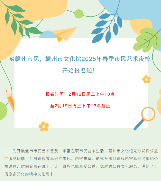 ※ 特别声明:本公众号仅用于赣州市文化馆公共文化服务及群众文化艺术普及,不用于任何商业用途。所转载文章及图片、视频、音频等版权均属原作者。如有侵权,请及时与本公众号联系。