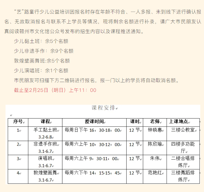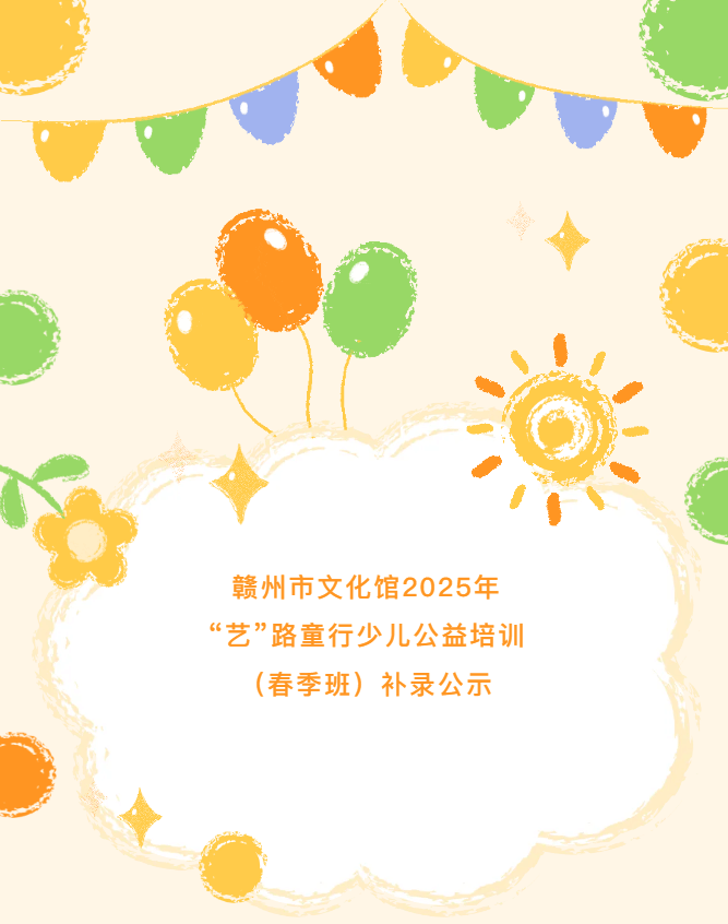赣州市文化馆2025年“艺”路童行少儿公益培训(春季班)补录公示